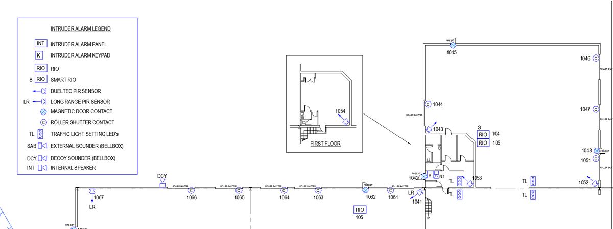 IRC CAD Services have a wealth of knowledge inside the fire and security sector. This enables us to produce the highest quality design drawings for your business needs. With a keen eye for detail and an understanding of Building services and BS:5839, we're able to assist you in producing the most cost effective and fully compliant fire alarm system for your project. We have vast experience in producing clear and precise working drawings that can be influential in aiding the project to run more smoothly.